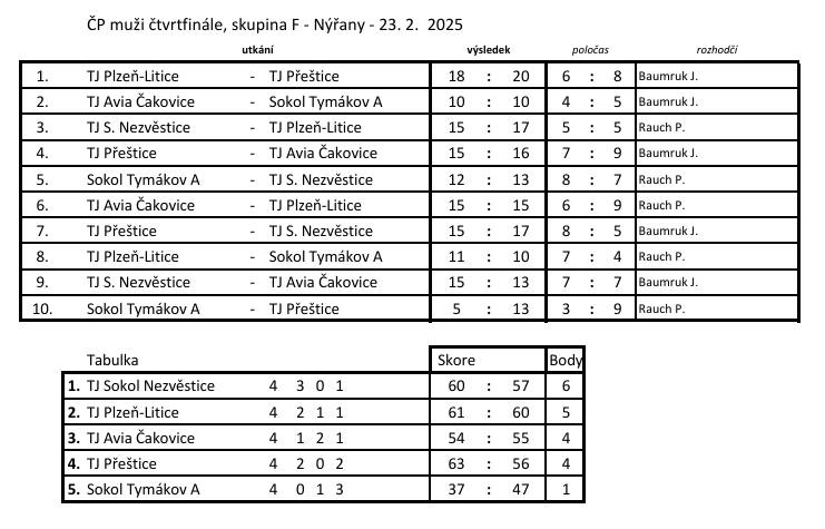 Semifinále se hraje v sobotu 8. 3. v nýřanské hale.