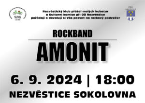 NKPMK a Kulturní Komise při OÚ Nezvěstice pořádají a dovolují si Vás pozvat na rockový podvečer ROCKBAND AMONIT, 6. 9. 2024 od 18:00 v Sokolovně