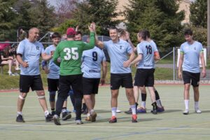 V sobotu jsme přijeli za stálého deštivého počáska do Prahy. Hřiště pod vodou pod mechem a v blátíčku . Ale nejhorší byl míč. V neděli jsme nastoupili sice za mokra ale s míčem, kterej se už dal udržet v jedné ruce.